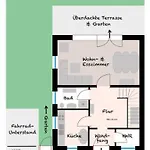 Eine komplette Küche mit einer Mikrowelle und einem Kühlschrank sorgt für eine bequeme Selbstversorgung. Die Villa Garten, Sonnenterrasse Und Strandkorb liegt in einer Entfernung von 7 Gehminuten vom Restaurant Radden's Eis, das Delhi- Gerichte serviert.